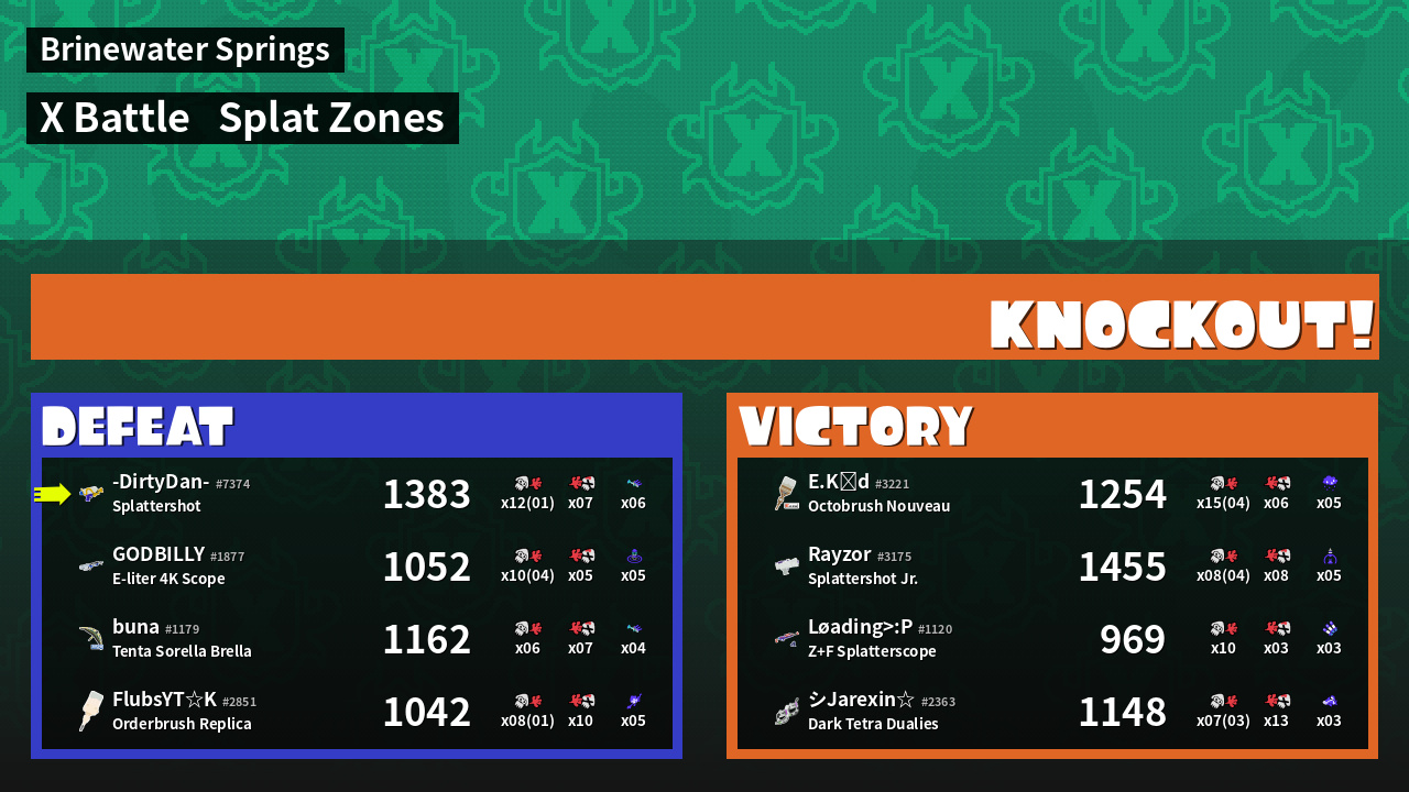 | Medals | #1 Overall Splatter #1 Splat Zone Guard #1 Turf Inker | ||