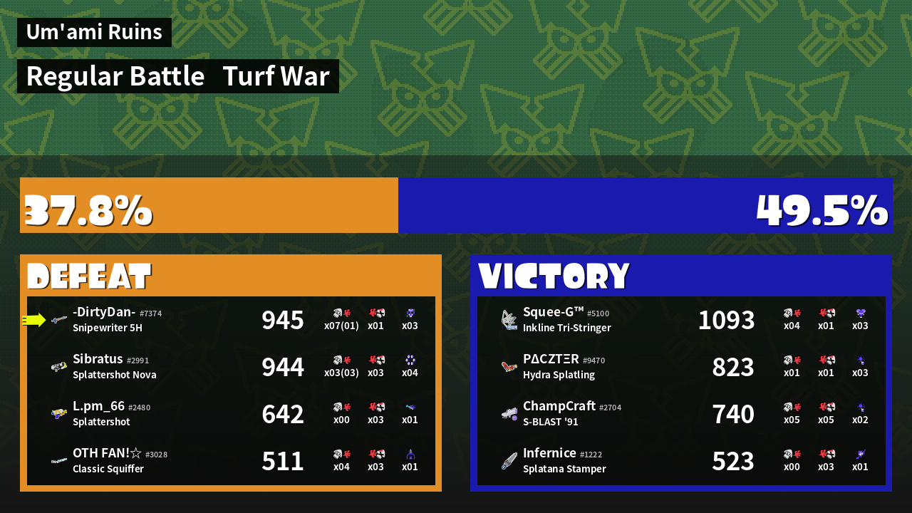 | Mode | Turf War - Regular Battle | ||