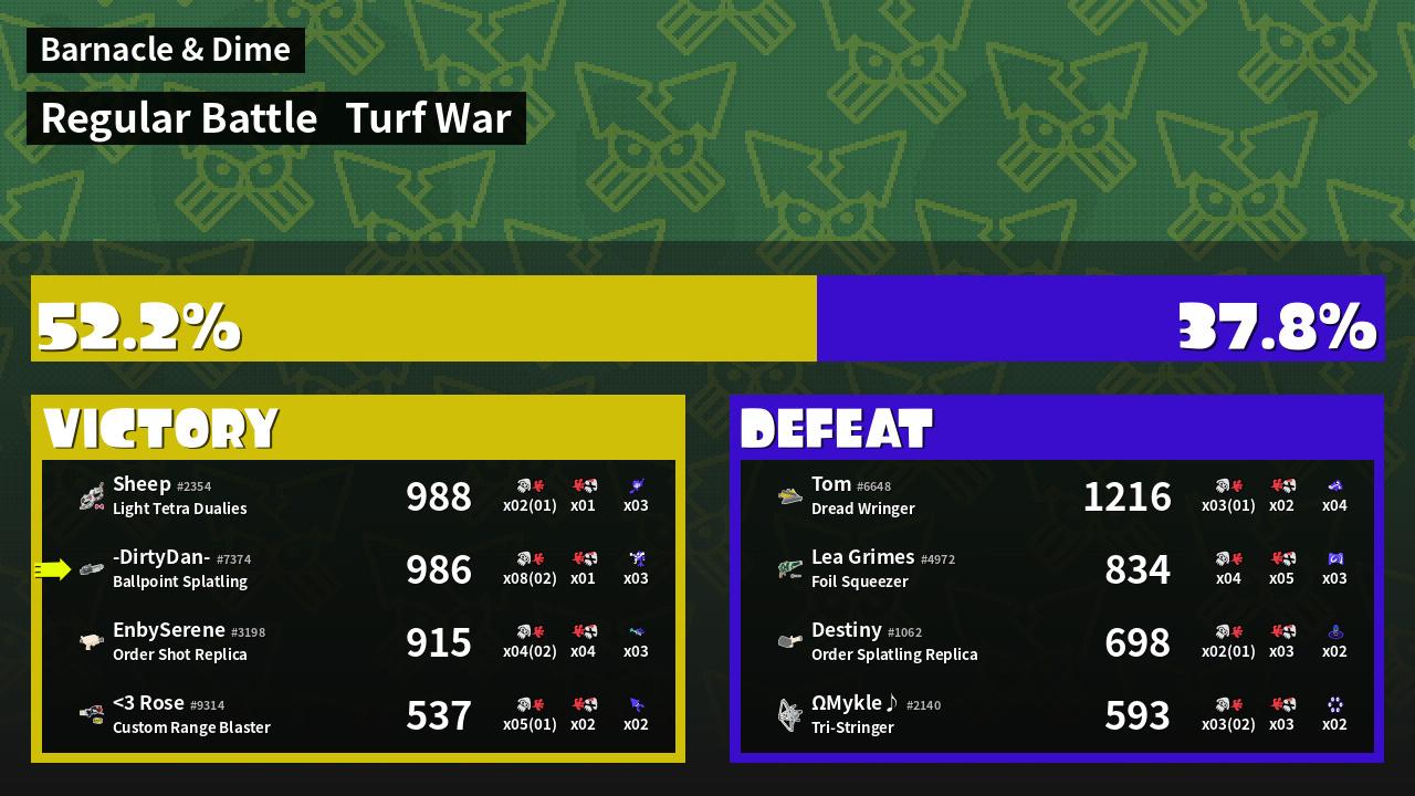 | Medals | #1 Overall Splatter #1 Enemy Splatter #1 Splat Assister | ||