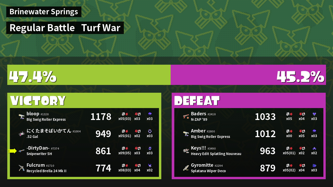 | Medals | #1 Overall Splatter #1 Popular Target #1 Splat Assister | ||
