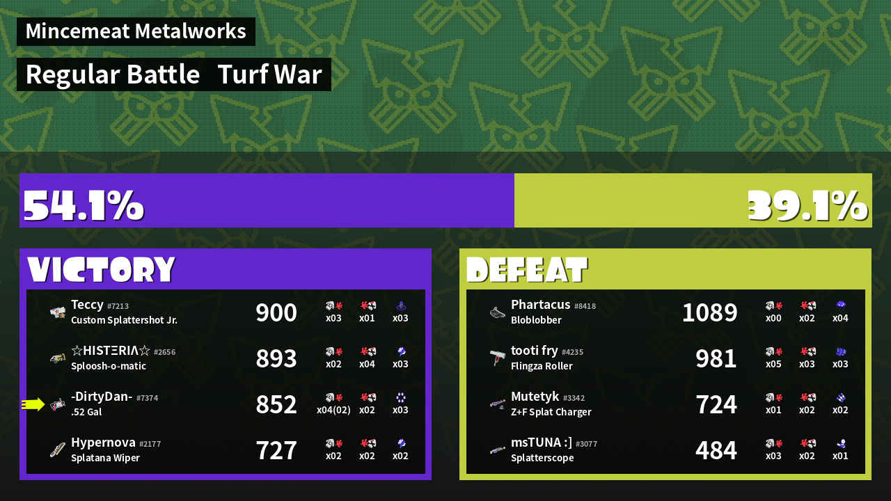 | Medals | #1 Overall Splatter #1 Splat Assister #1 Killer Wail 5.1 User | ||