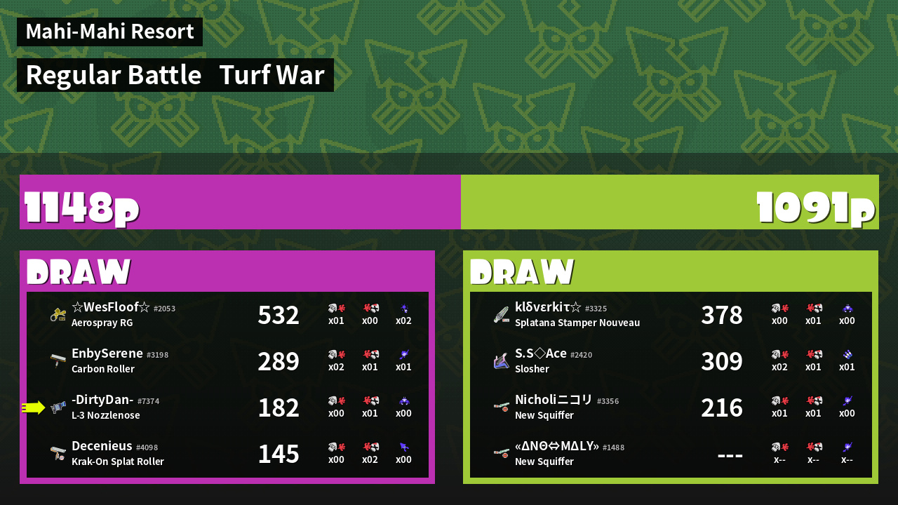 | Mode | Turf War - Regular Battle | ||