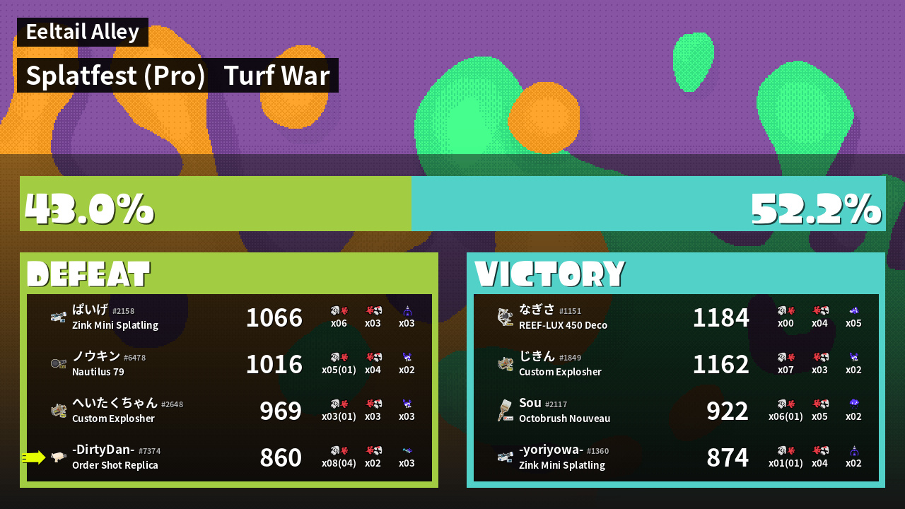 | Mode | Turf War - Splatfest (Pro) | ||