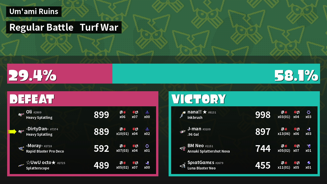 | Medals | #1 Overall Splatter #1 Popular Target #1 Enemy-Base Inker | ||