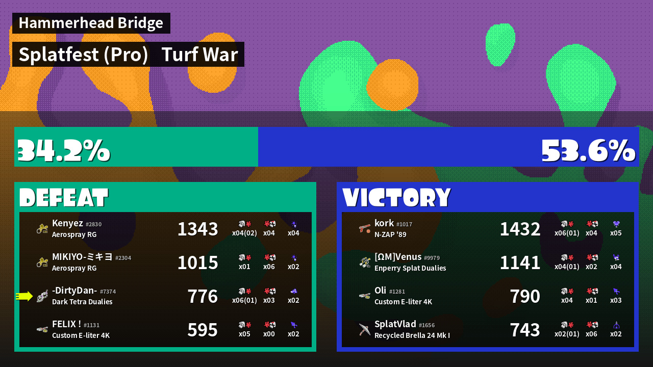 | Medals | #1 Overall Splatter #1 Enemy Splatter First Splat! | ||