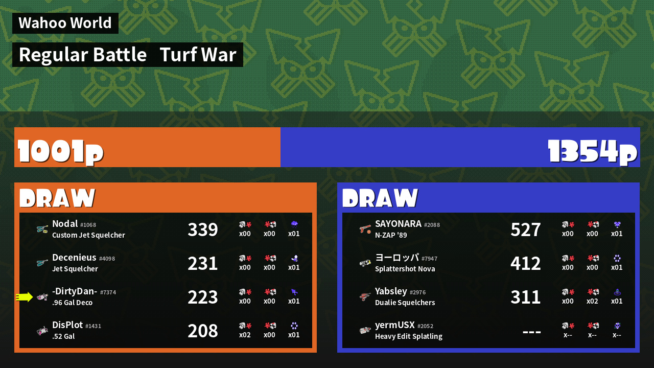 | Mode | Turf War - Regular Battle | ||