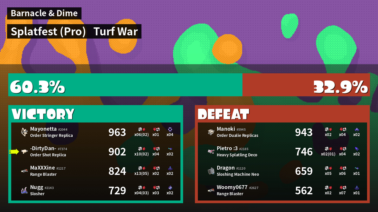 | Medals | #1 Enemy Splatter #1 Trizooka User #2 Overall Splatter | ||