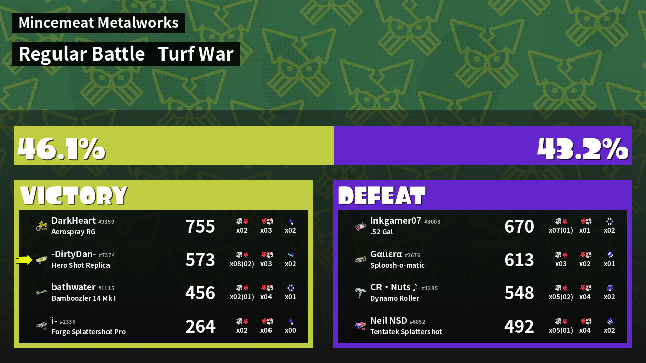 | Mode | Turf War - Regular Battle | ||
