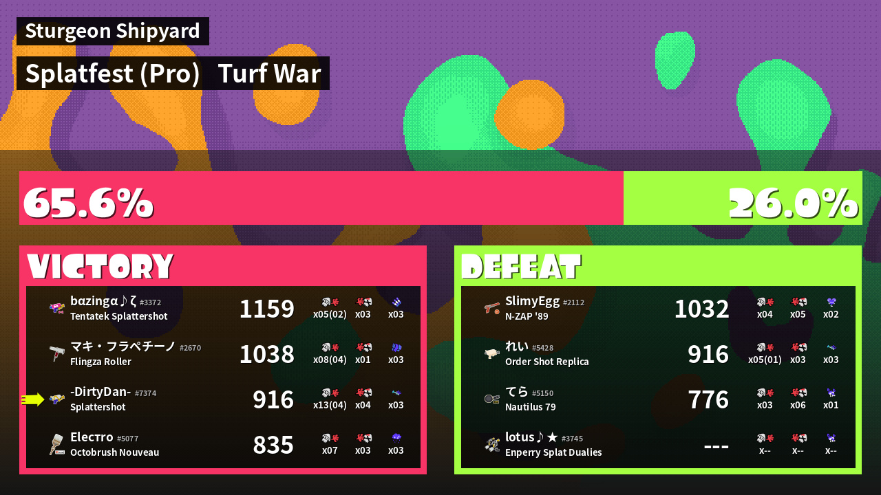 | Medals | #1 Overall Splatter #1 Popular Target #1 Enemy Splatter | ||