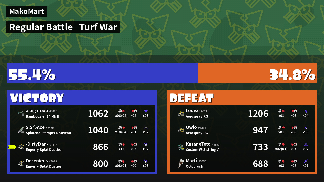 | Weapon | Enperry Splat Dualies ( Curling Bomb / Triple Splashdown) | ||