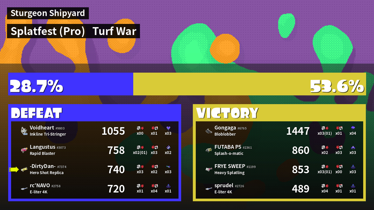 | Mode | Turf War - Splatfest (Pro) | ||