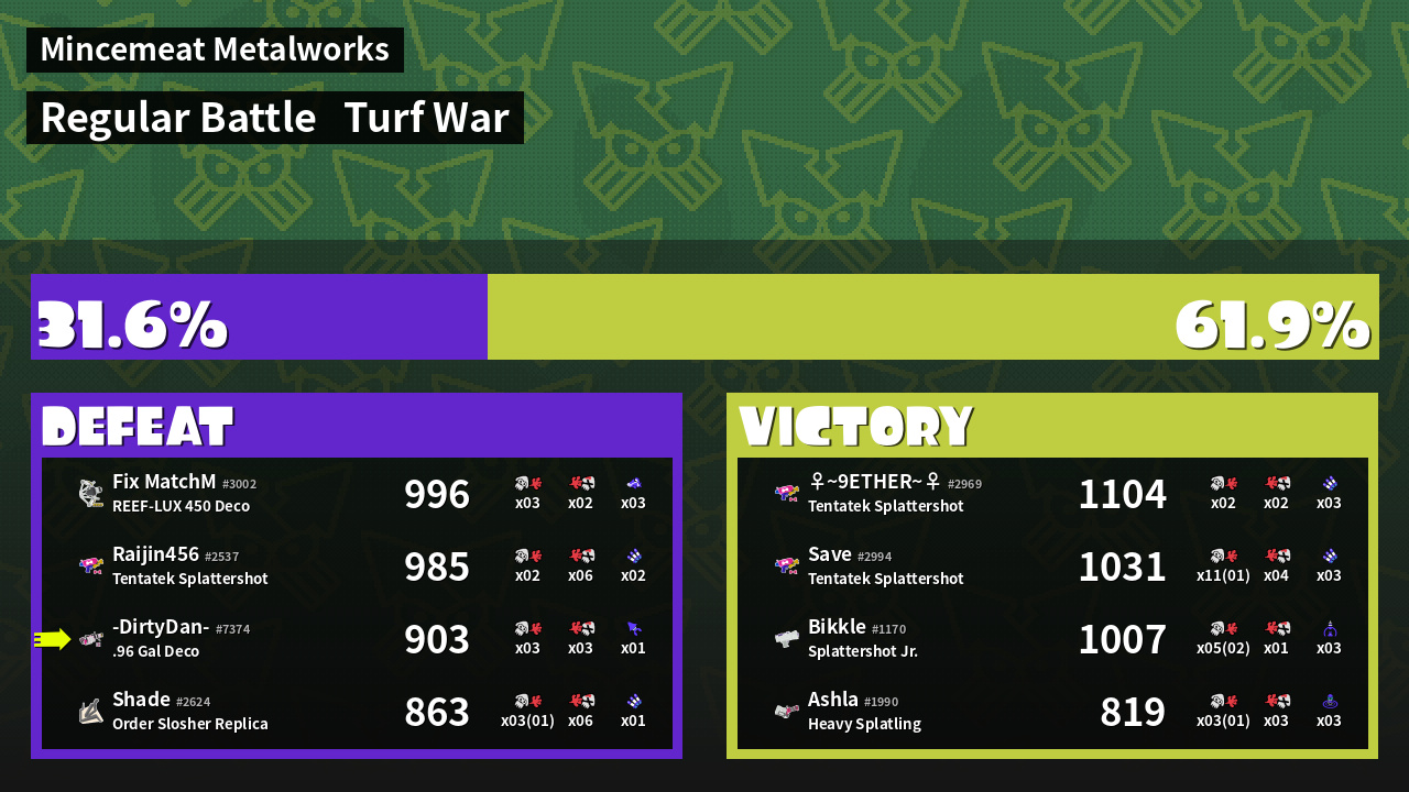 | Medals | #1 Overall Splatter #1 Popular Target #1 Super Jump Spot | ||