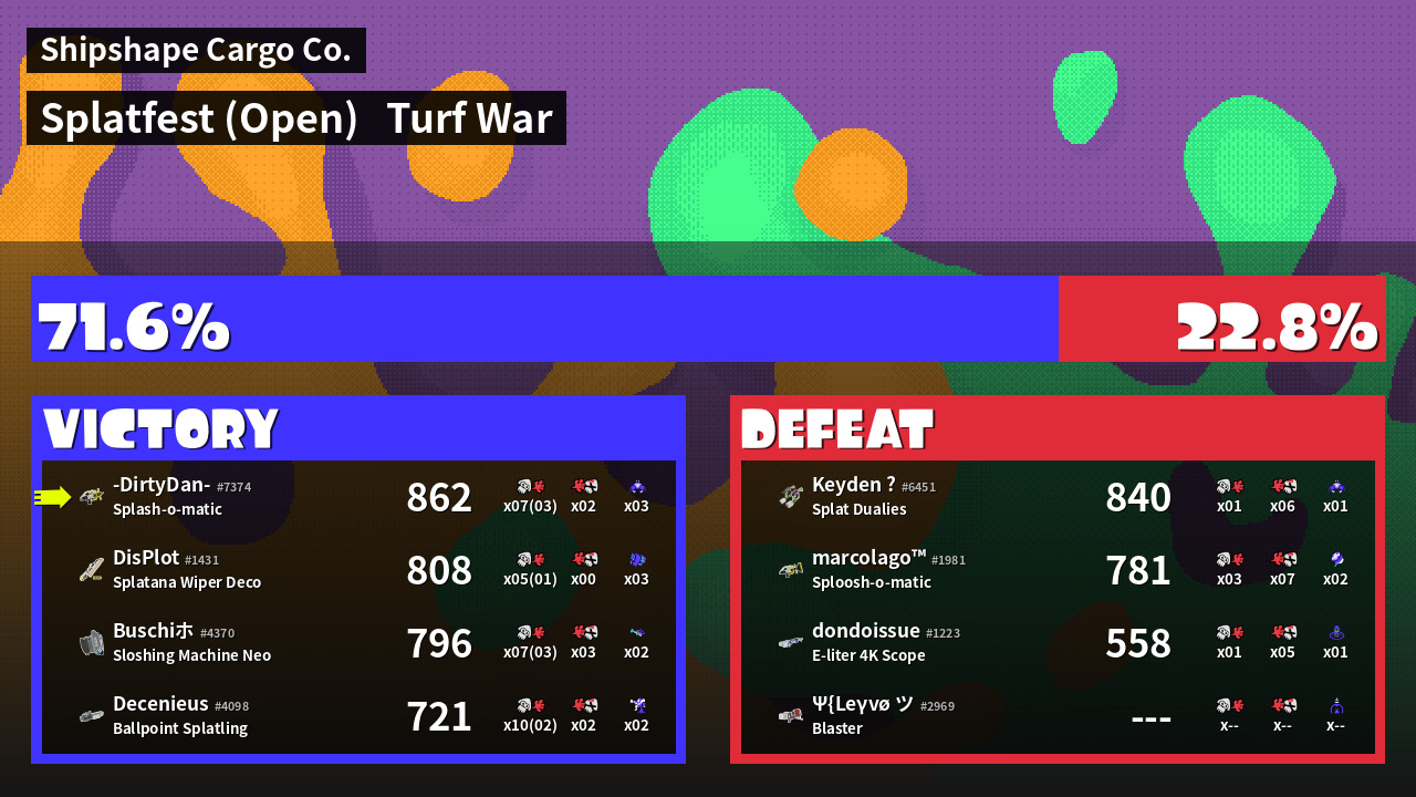 | Medals | #1 Turf Inker #1 Super Jump Spot #1 Splat Assister | ||