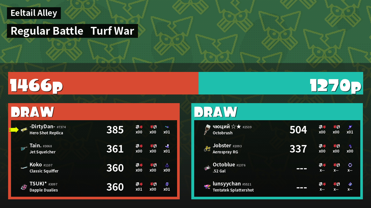 | Mode | Turf War - Regular Battle | ||