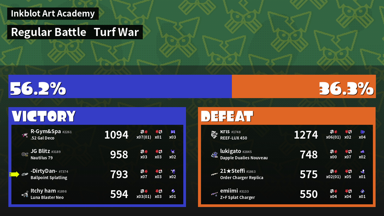 | Mode | Turf War - Regular Battle | ||