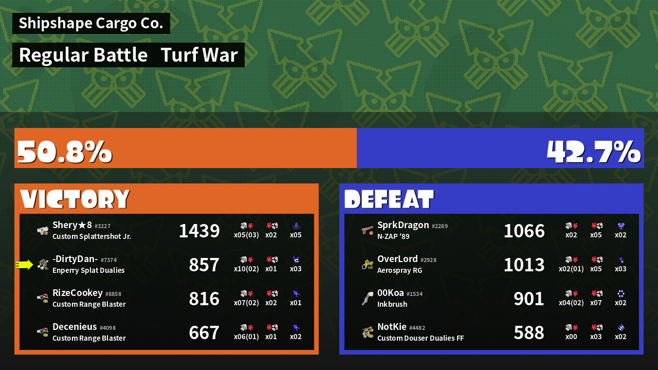 | Mode | Turf War - Regular Battle | ||
