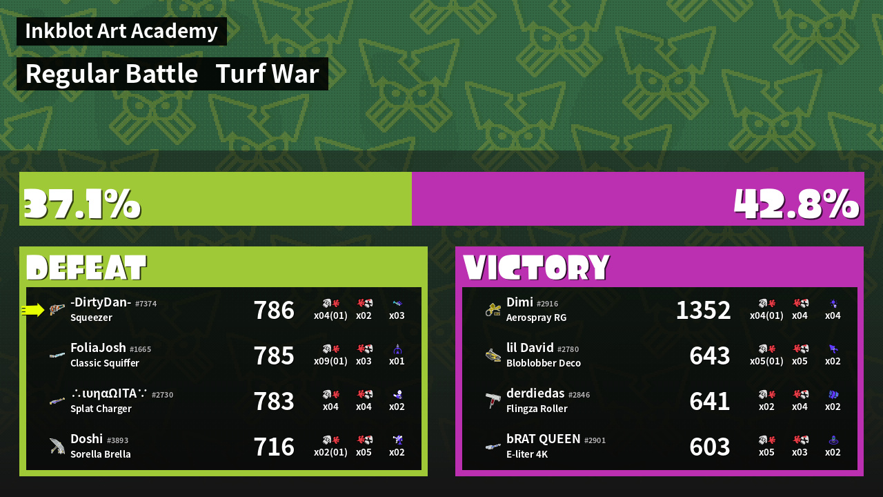 | Medals | #1 Turf Inker #1 Splat Assister #1 Base Defender | ||