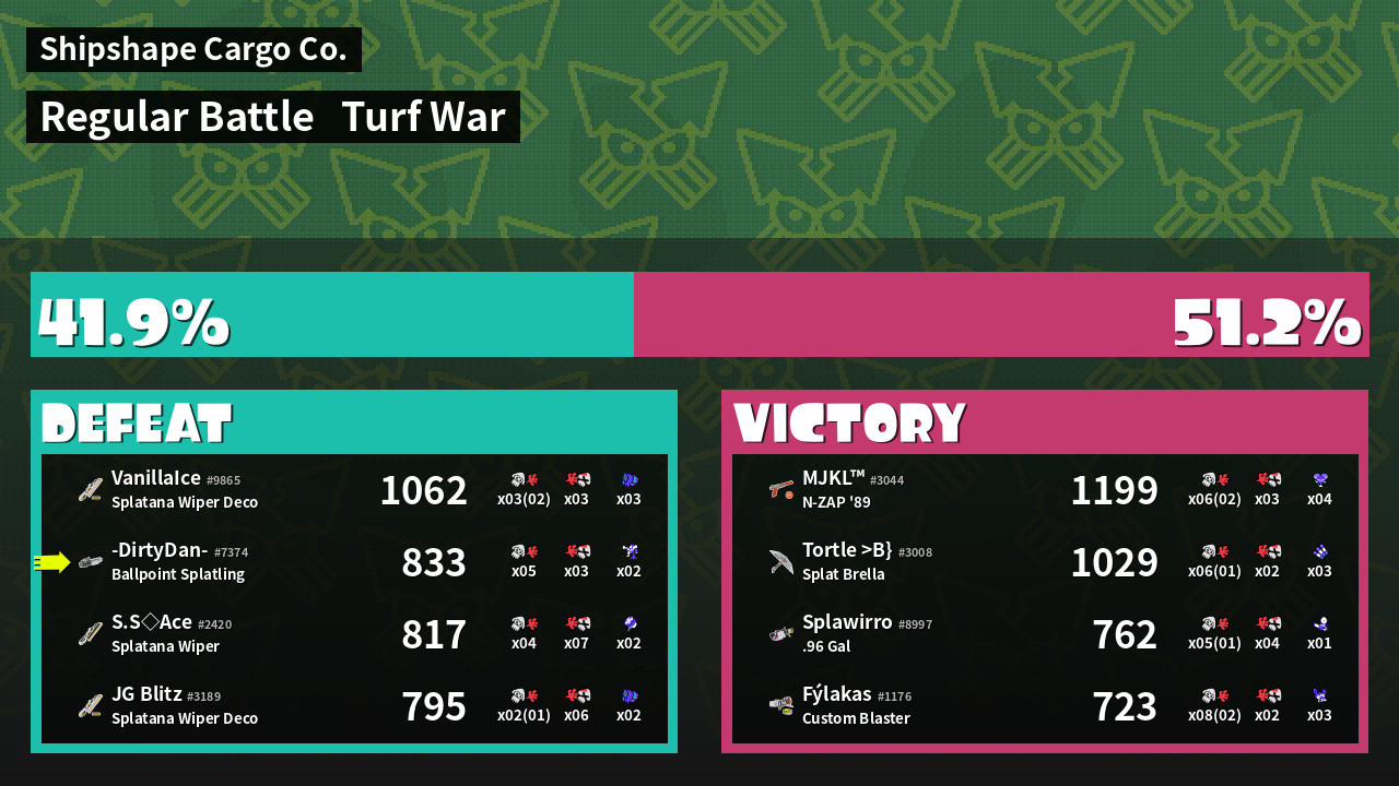 | Mode | Turf War - Regular Battle | ||