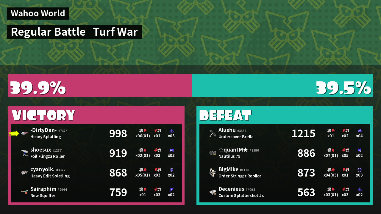 | Mode | Turf War - Regular Battle | ||