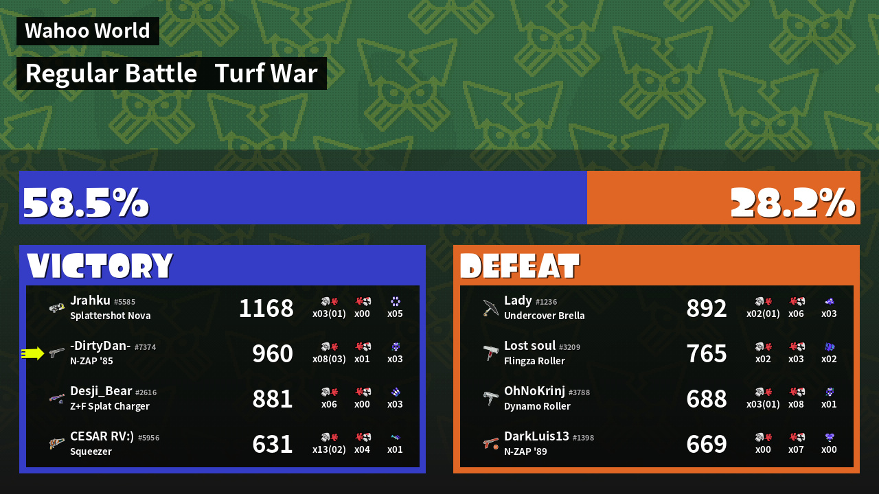 | Medals | #1 Splat Assister #1 Ground Traveler #1 Damage Taker | ||