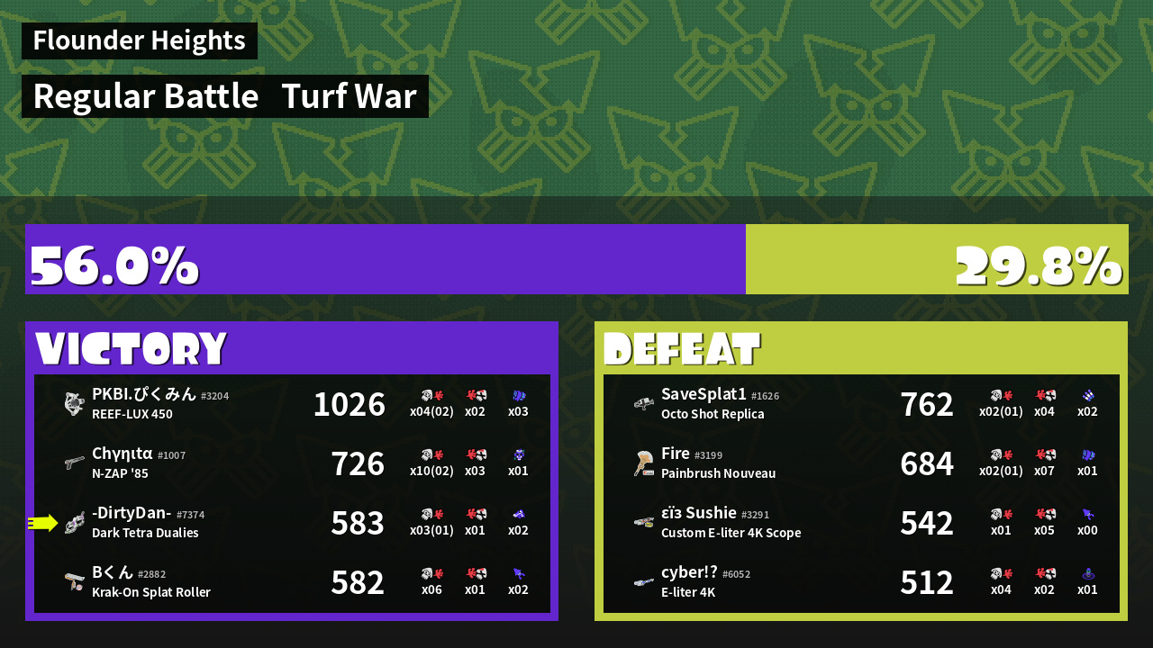| Mode | Turf War - Regular Battle | ||