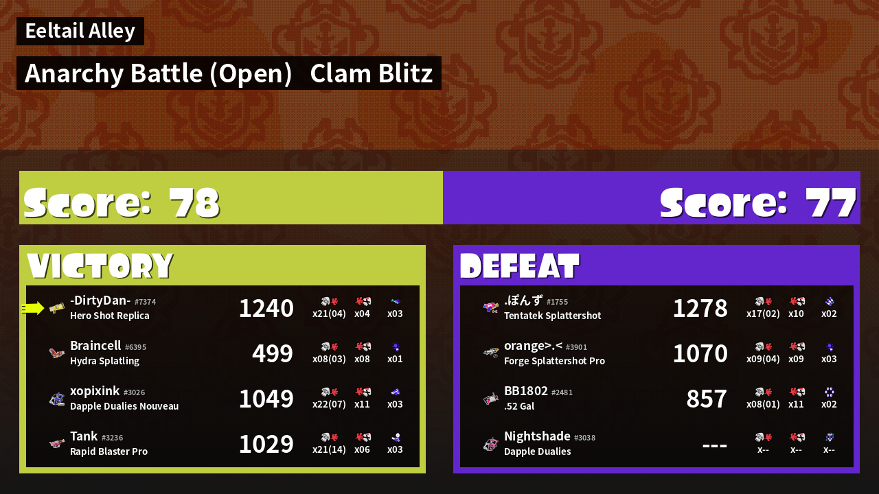 | Mode | Clam Blitz - Anarchy Battle (Open) | ||