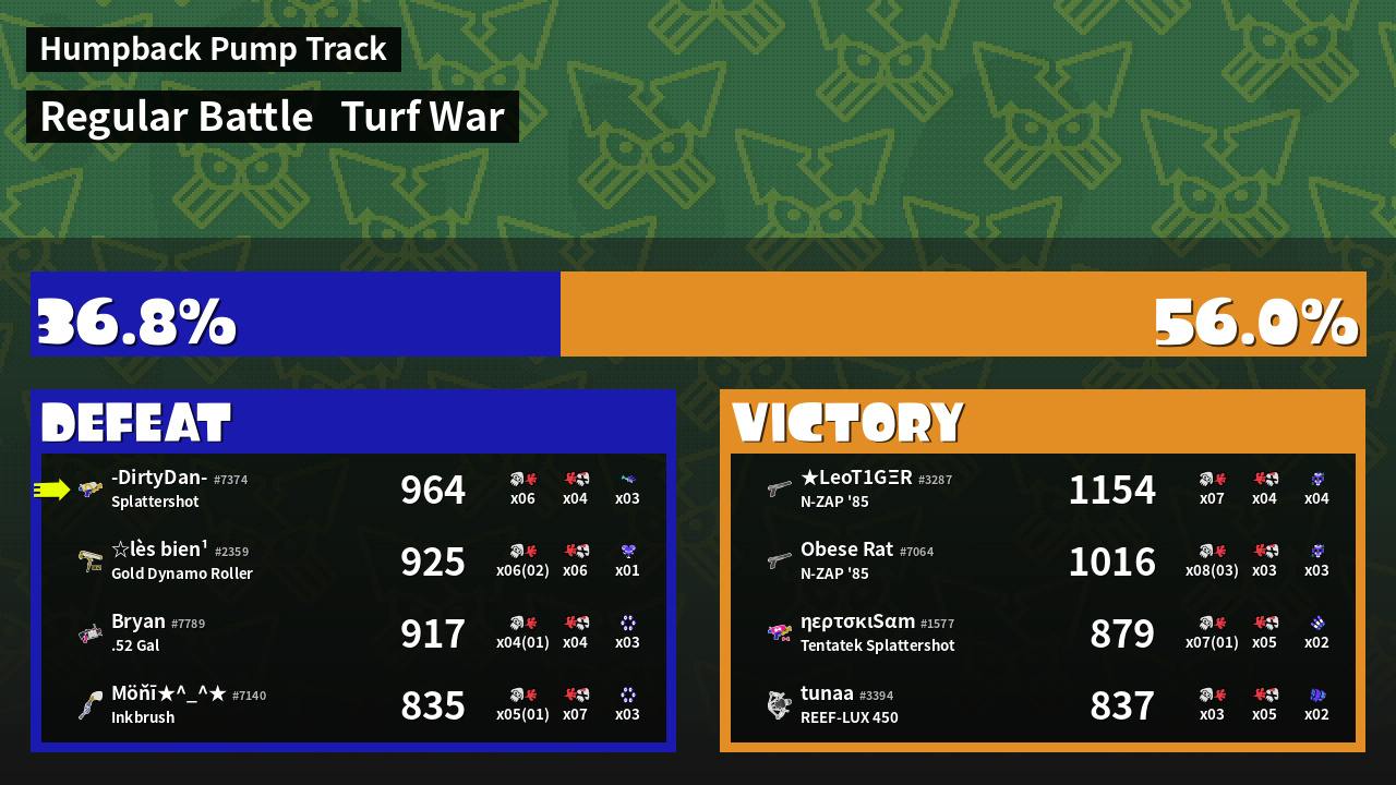 | Mode | Turf War - Regular Battle | ||