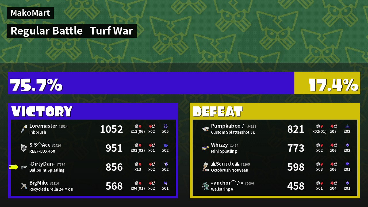 | Medals | #1 Overall Splatter #1 Enemy Splatter First Splat! | ||