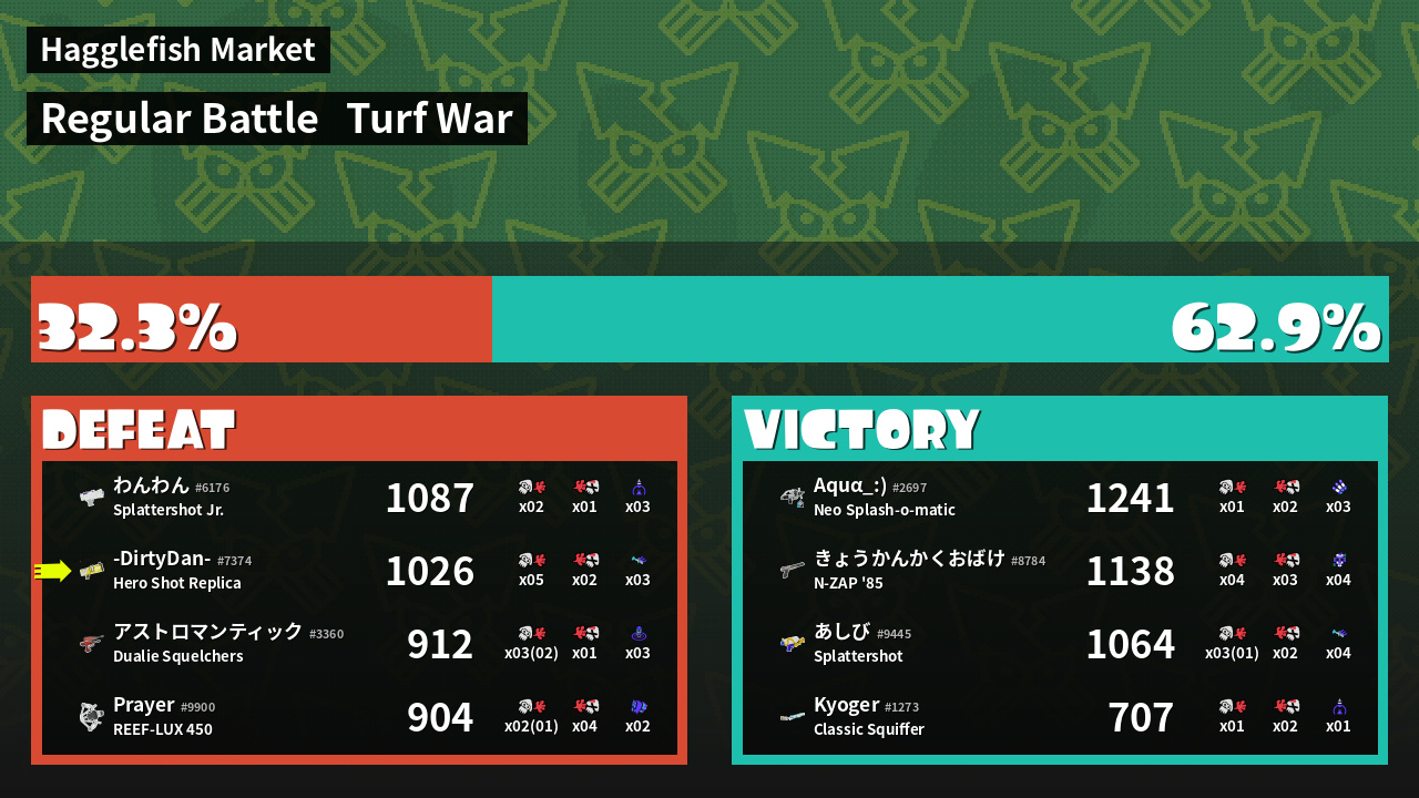 | Medals | #1 Overall Splatter #1 Enemy-Base Inker #1 Enemy Splatter | ||