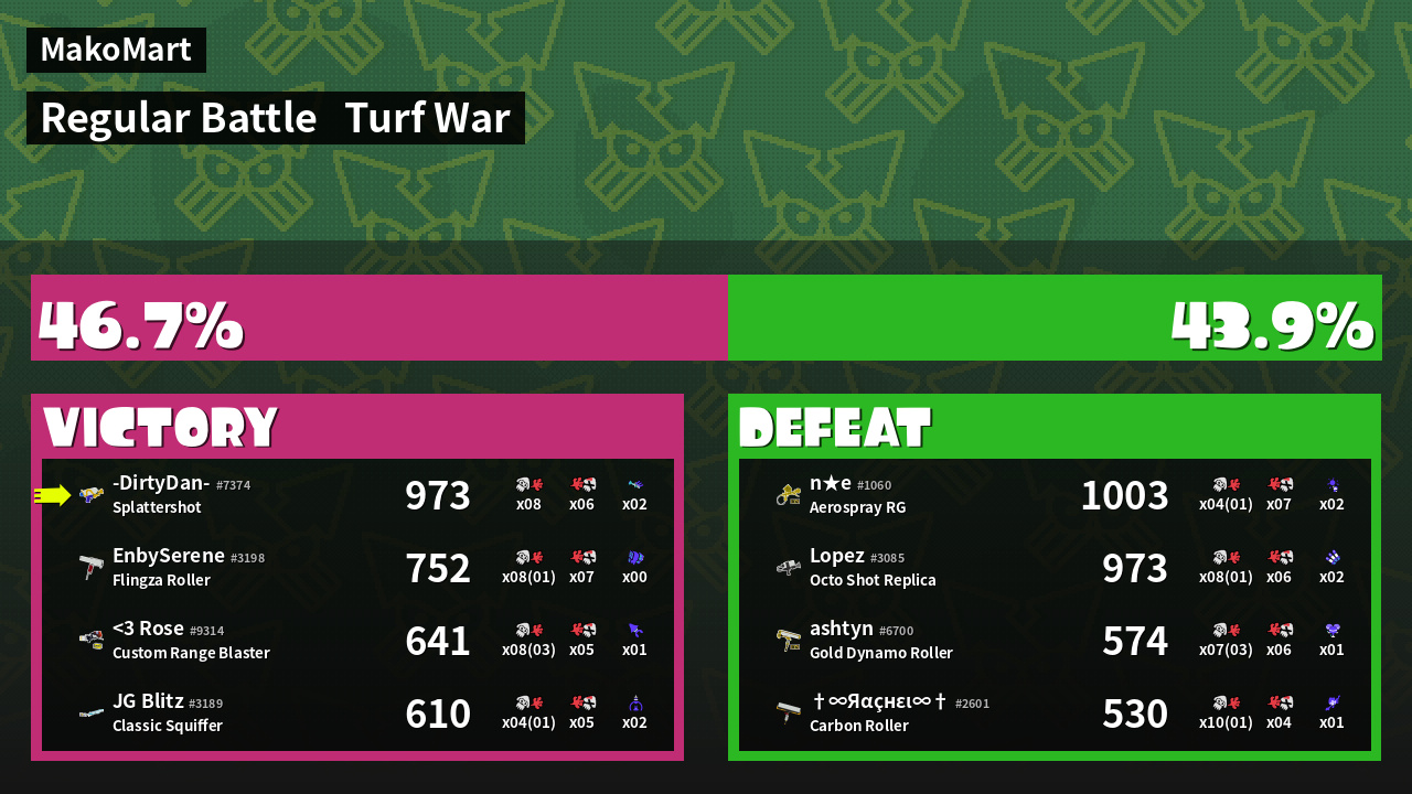 | Medals | #1 Overall Splatter #1 Turf Inker #1 Enemy Splatter | ||