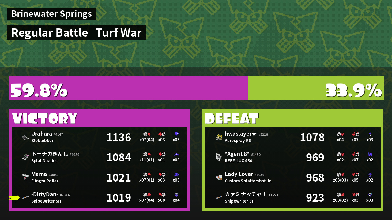 | Mode | Turf War - Regular Battle | ||