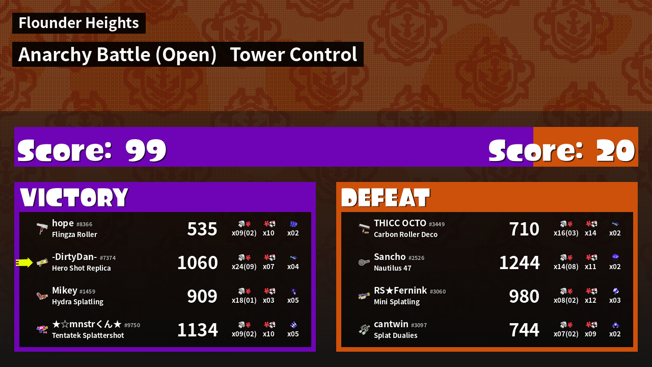 | Mode | Tower Control - Anarchy Battle (Open) | ||