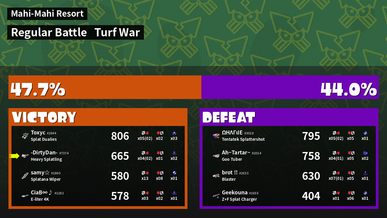 | Mode | Turf War - Regular Battle | ||