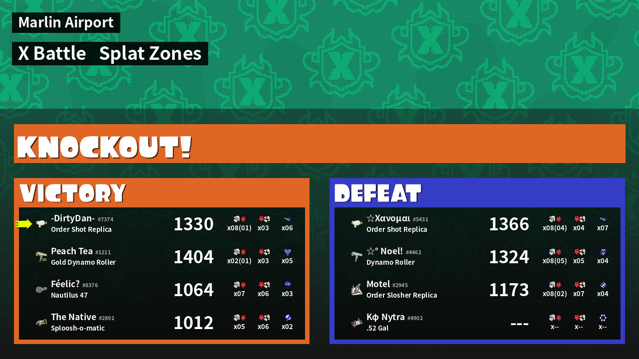 | Mode | Splat Zones - X Battle | ||