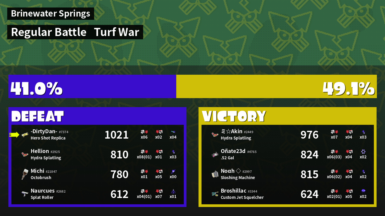 | Mode | Turf War - Regular Battle | ||