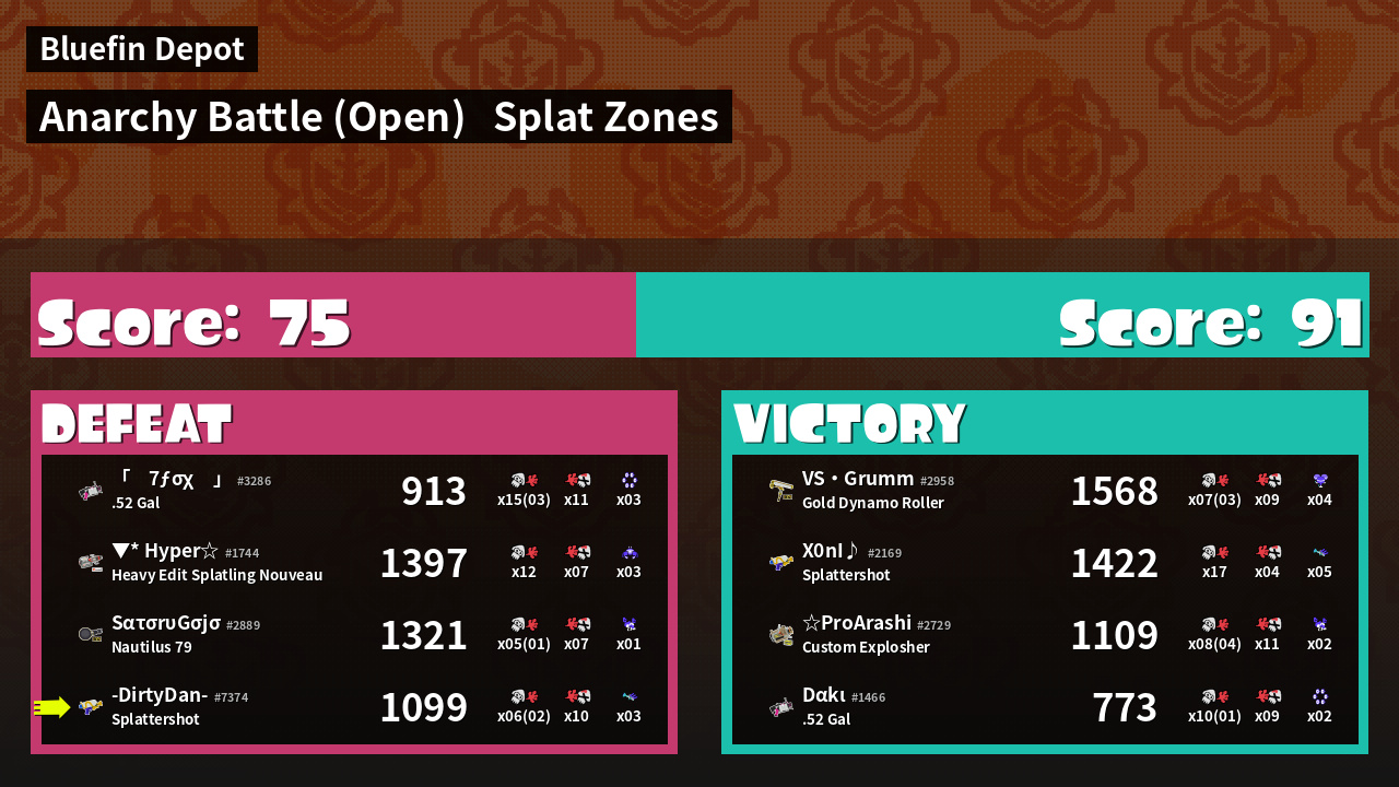 | Mode | Splat Zones - Anarchy Battle (Open) | ||