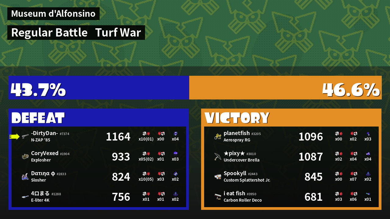 | Mode | Turf War - Regular Battle | ||