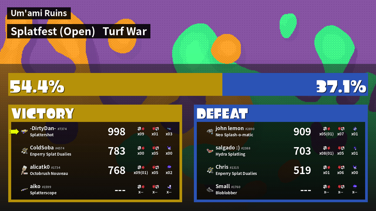| Mode | Turf War - Splatfest (Open) | ||