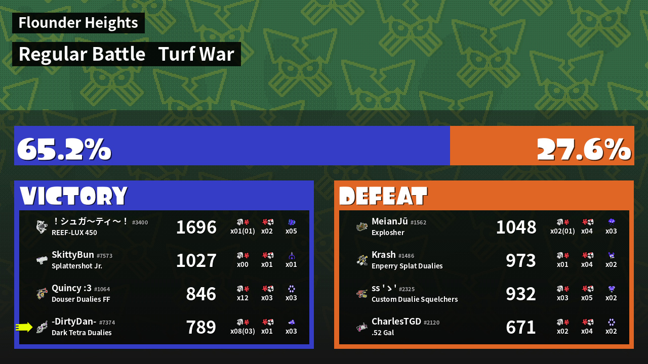 | Mode | Turf War - Regular Battle | ||