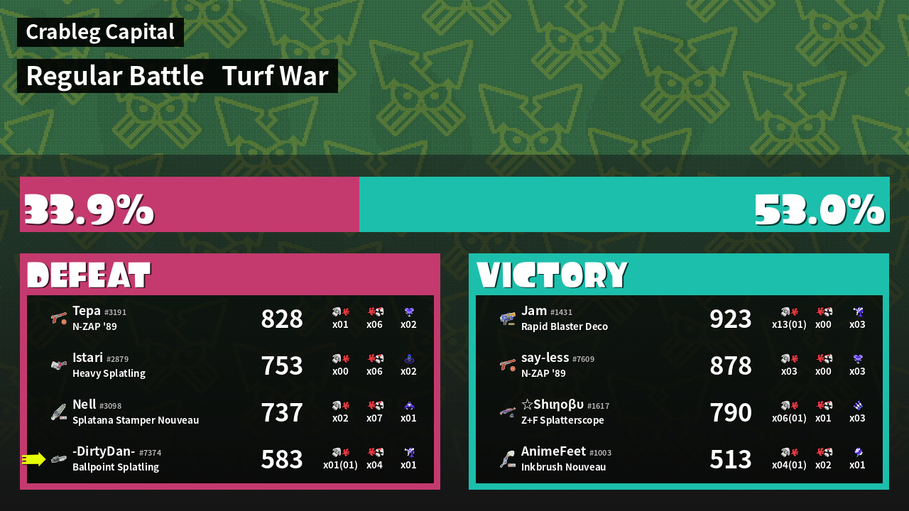| Mode | Turf War - Regular Battle | ||