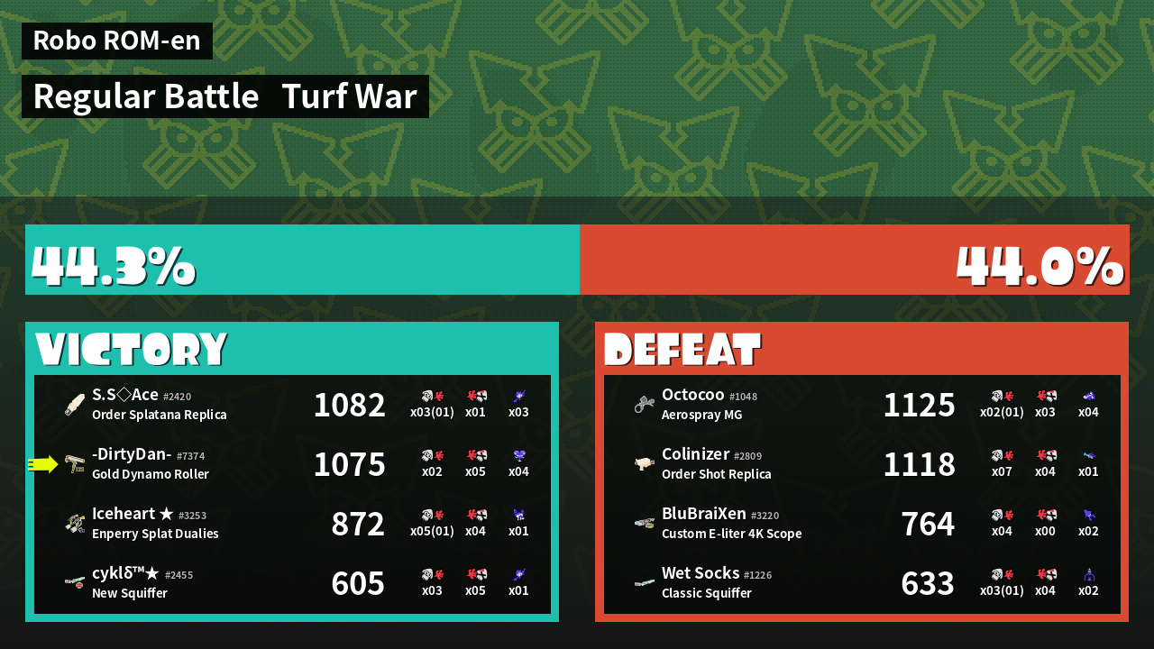 | Mode | Turf War - Regular Battle | ||