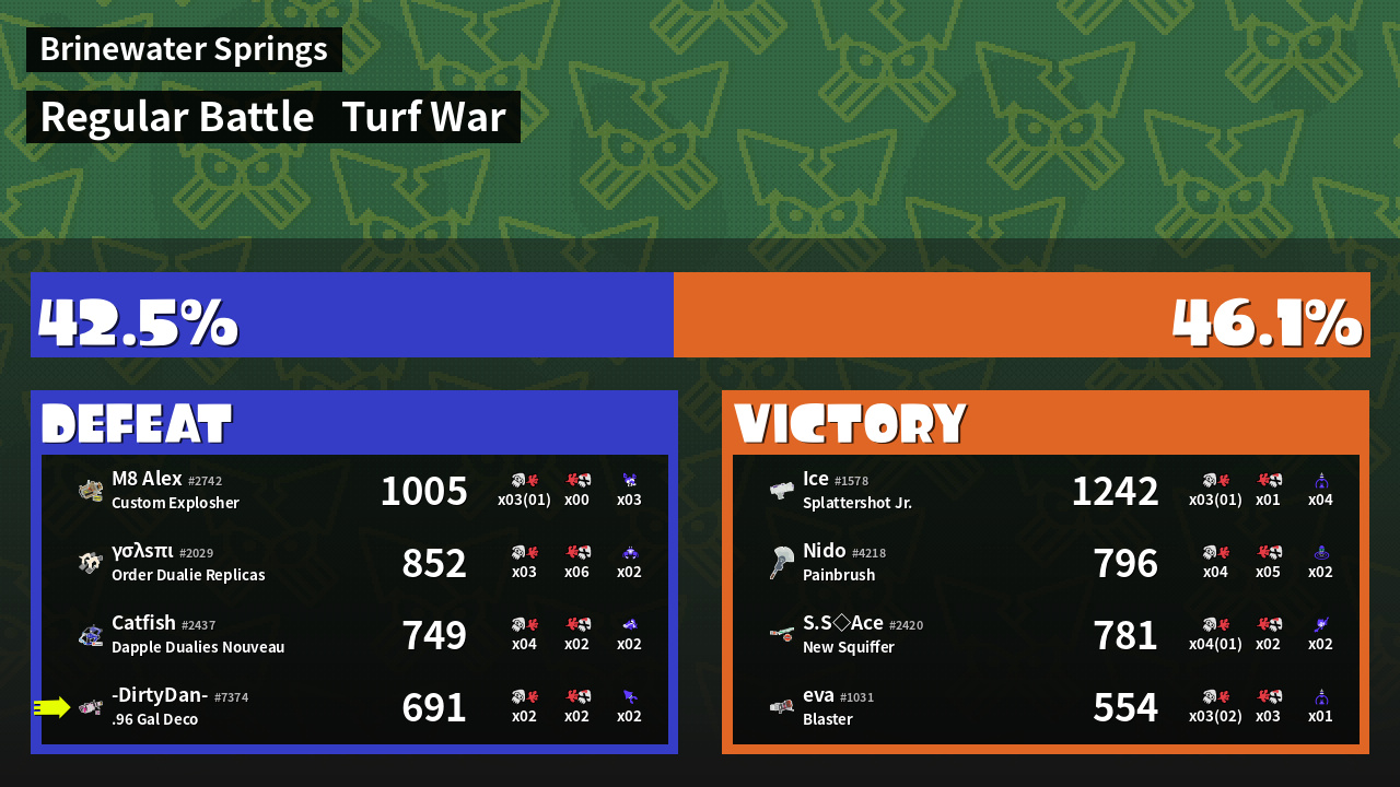 | Mode | Turf War - Regular Battle | ||