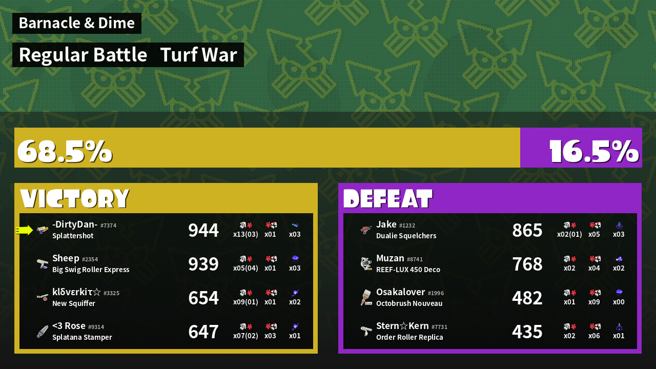 | Medals | #1 Overall Splatter #1 Turf Inker #1 Popular Target | ||