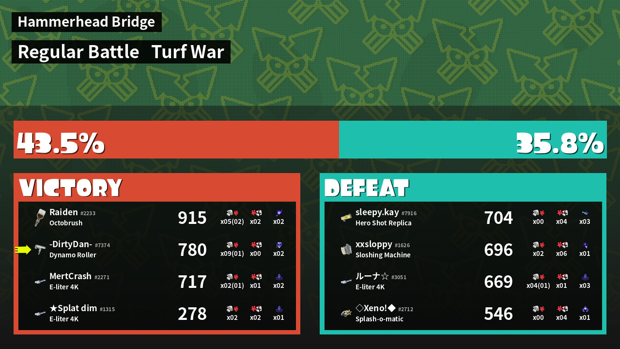 | Weapon | Dynamo Roller ( Sprinkler / Tacticooler) | ||