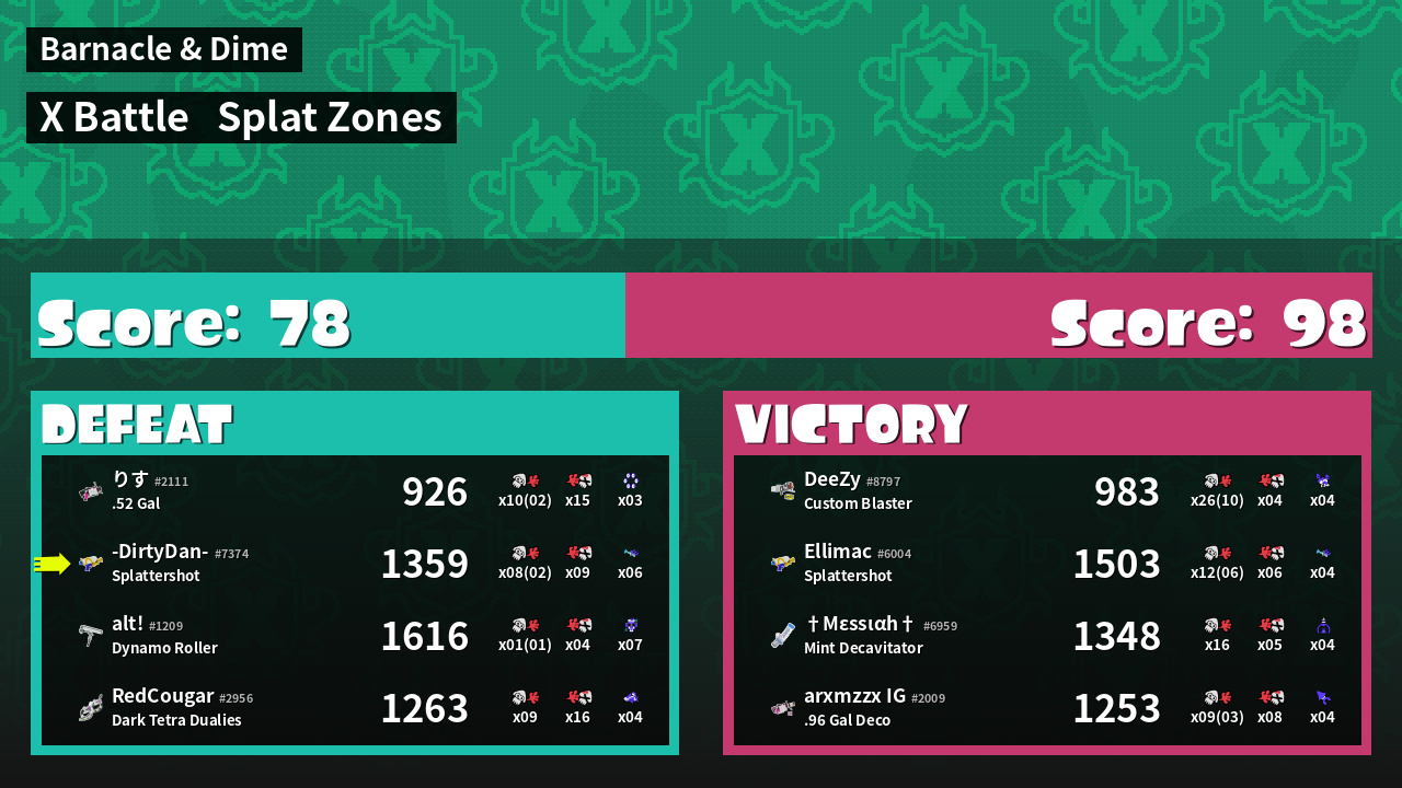 | Mode | Splat Zones - X Battle | ||