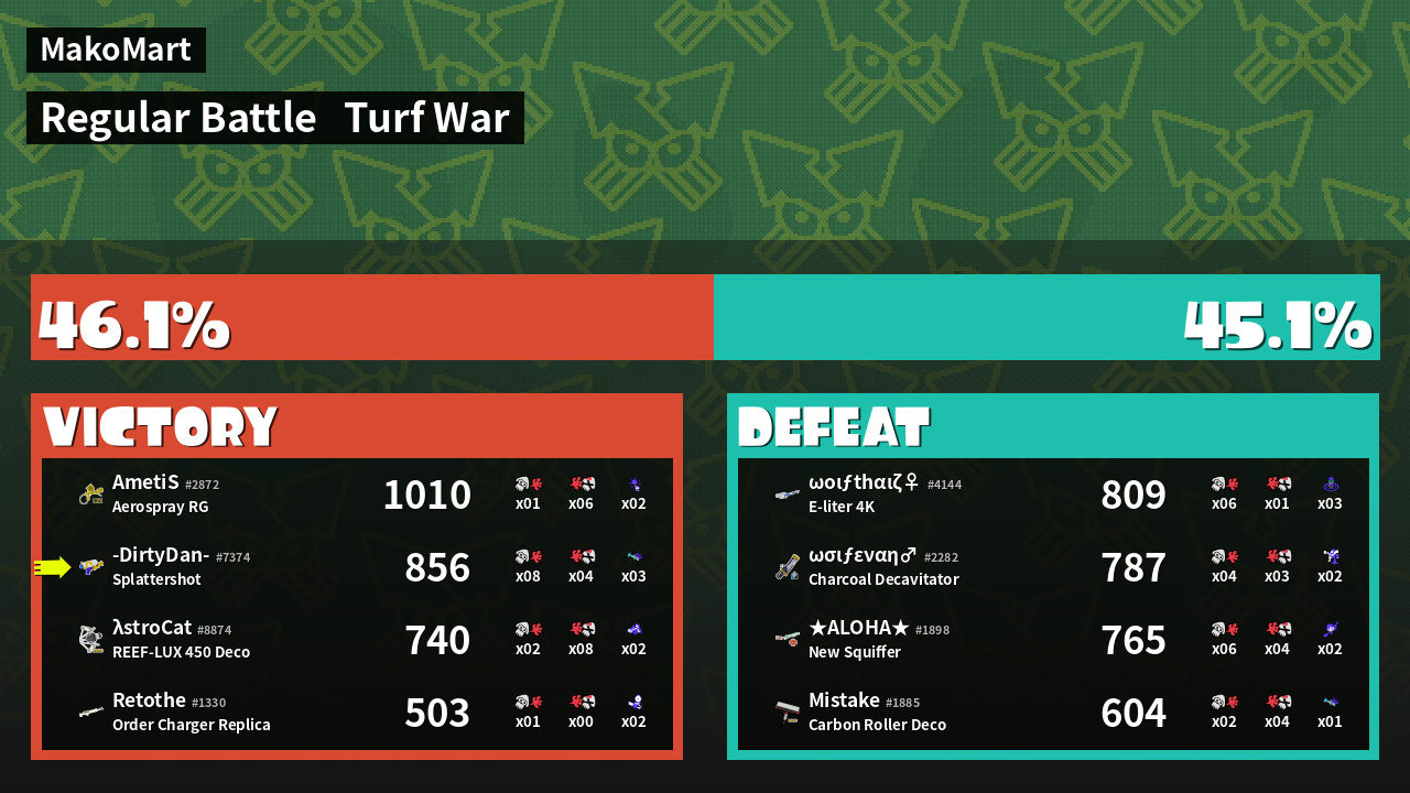 | Medals | #1 Overall Splatter #1 Popular Target #1 Enemy-Base Inker | ||