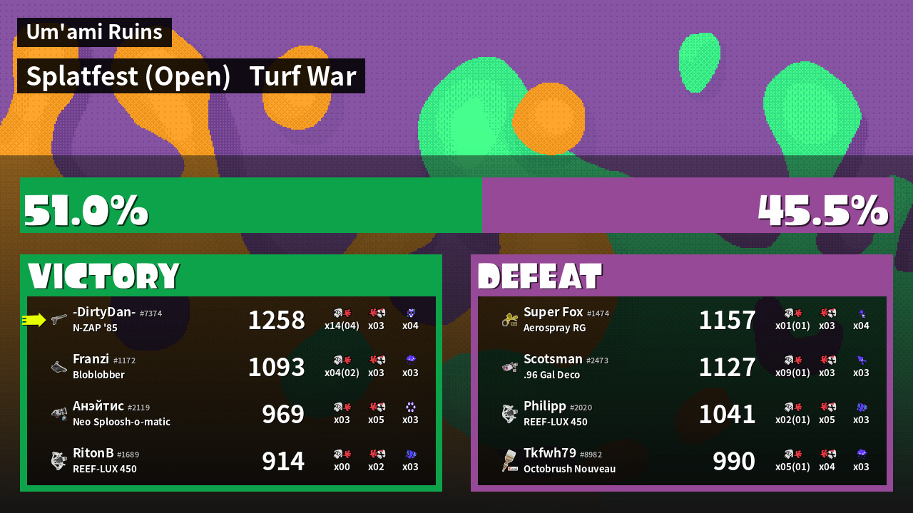 | Mode | Turf War - Splatfest (Open) | ||