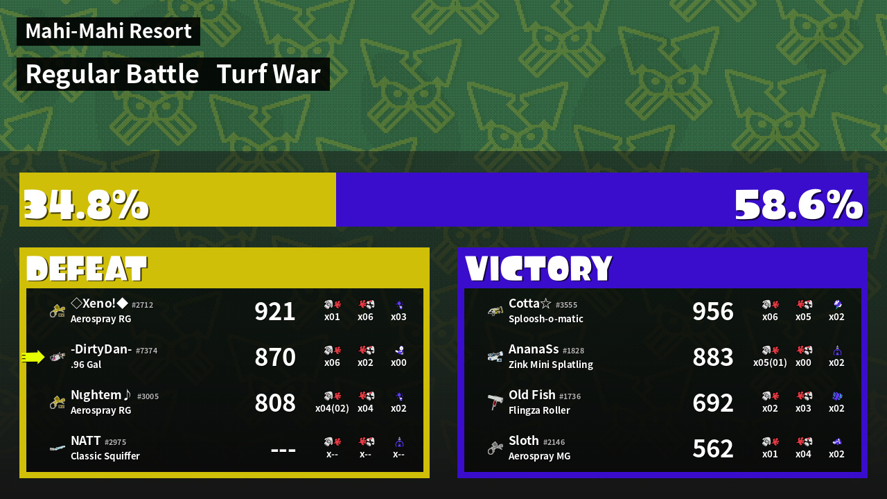 | Mode | Turf War - Regular Battle | ||