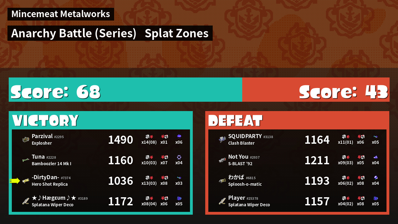 | Mode | Splat Zones - Anarchy Battle (Series) | ||