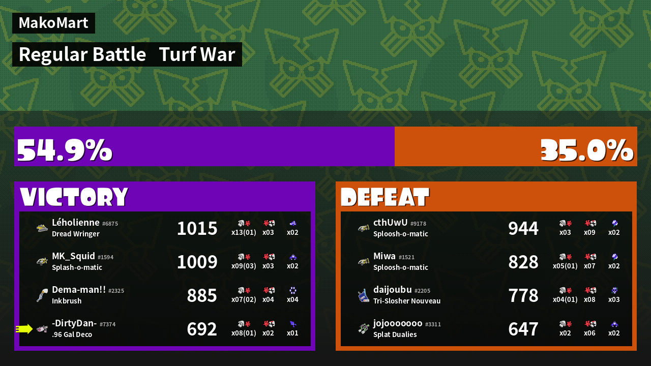 | Mode | Turf War - Regular Battle | ||